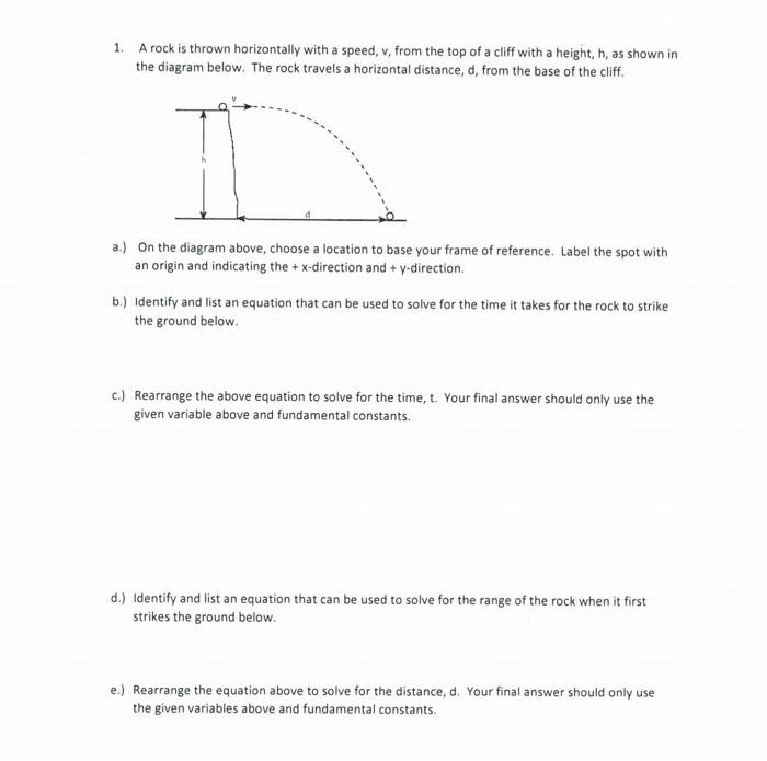 Up to 24 cash back A rock is thrown horizontally with speed v from the top of a cliffof height H as shown in the diagram to the right. Is the acceleration of gravity. V 1 v 0 x 2 a t 2 v_1sqrt v_ 0x2 at2 v 1 v 0 x 2 a t 2.